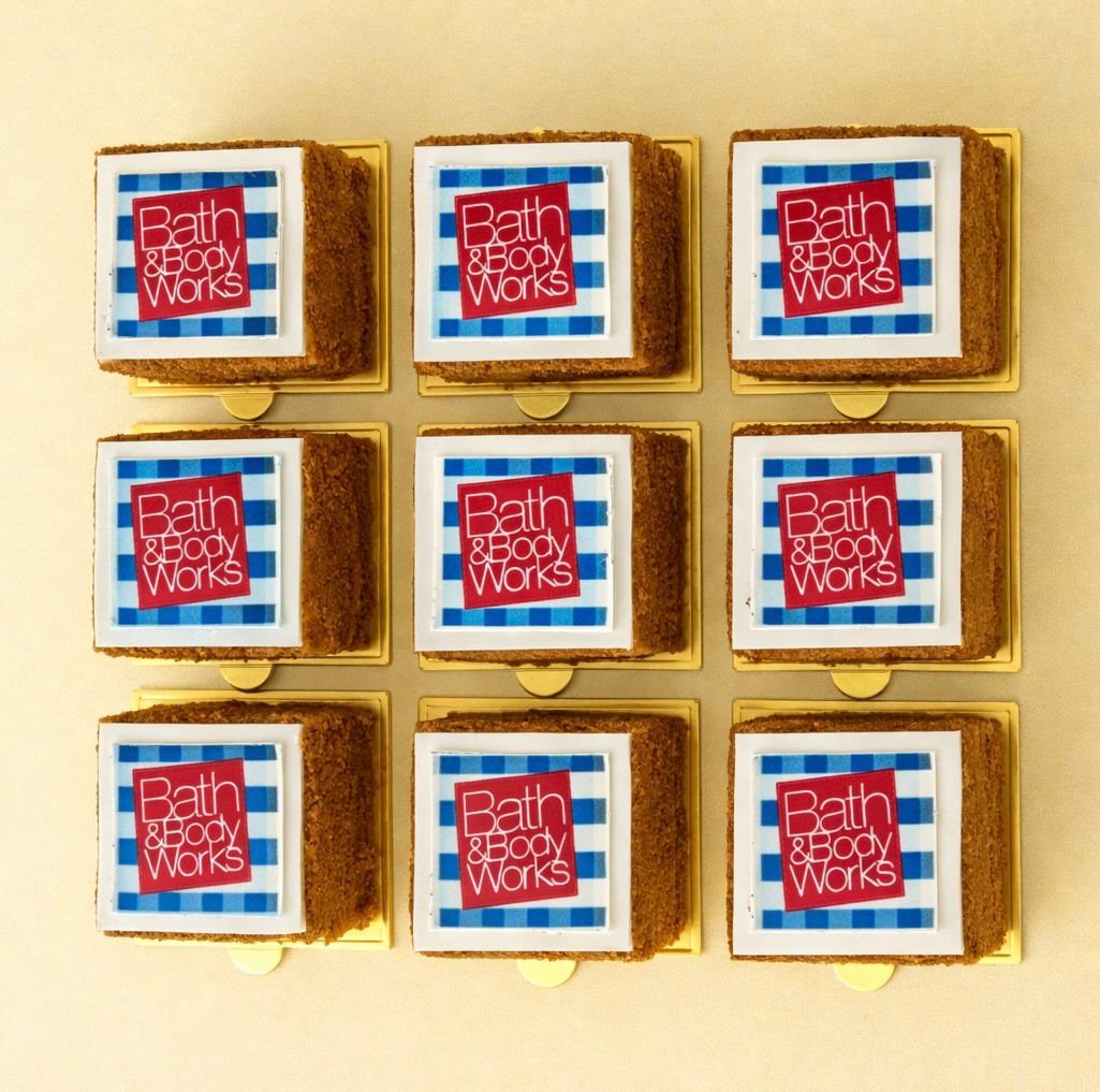 Custom edible logo cakes for weddings, corporate events, engagements and brand activations.”